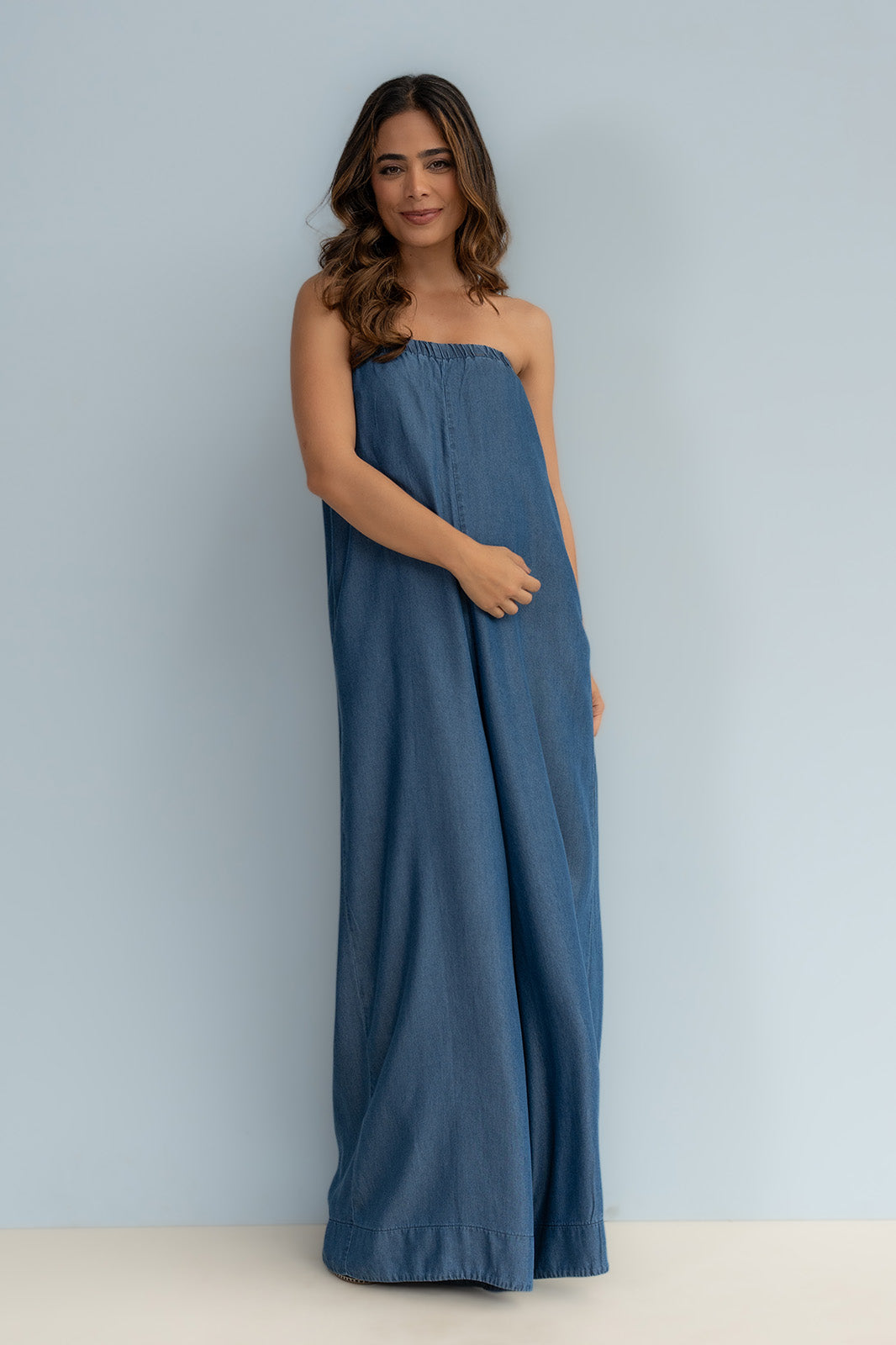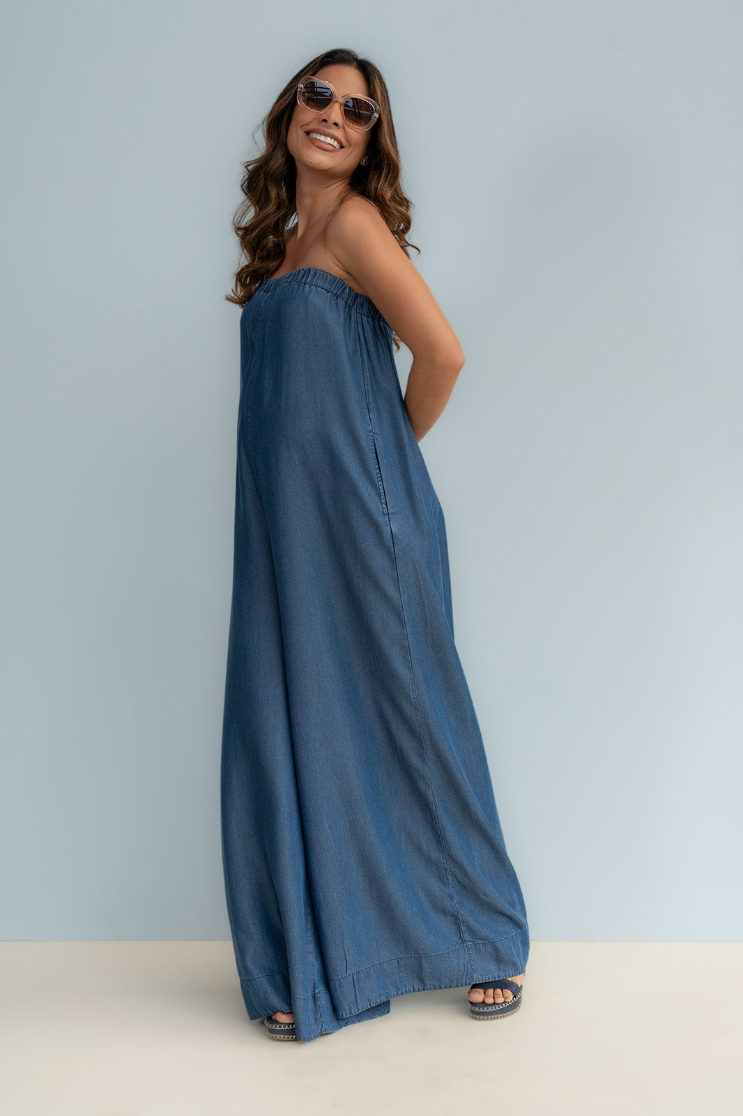 Enterizo straple silueta amplia 100% tencel (fibra natural )