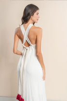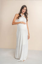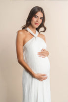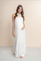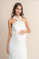 Vestido materno largo, tiras cruzadas con pompones de color Vinotinto