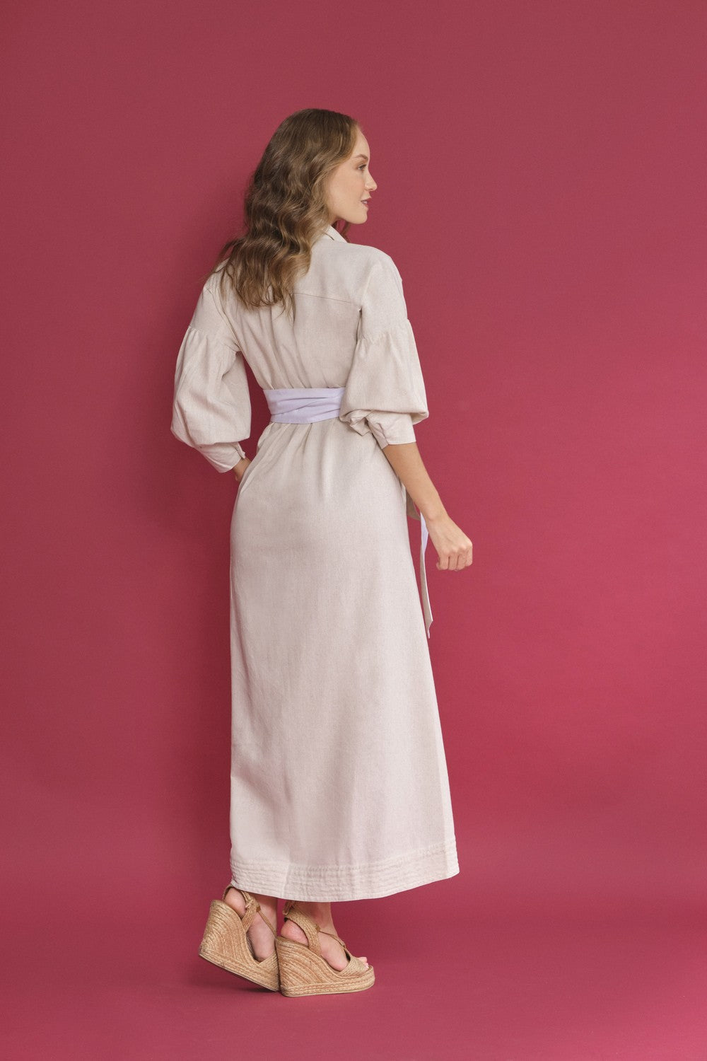 Vestido lino Manga zurcida combinada.